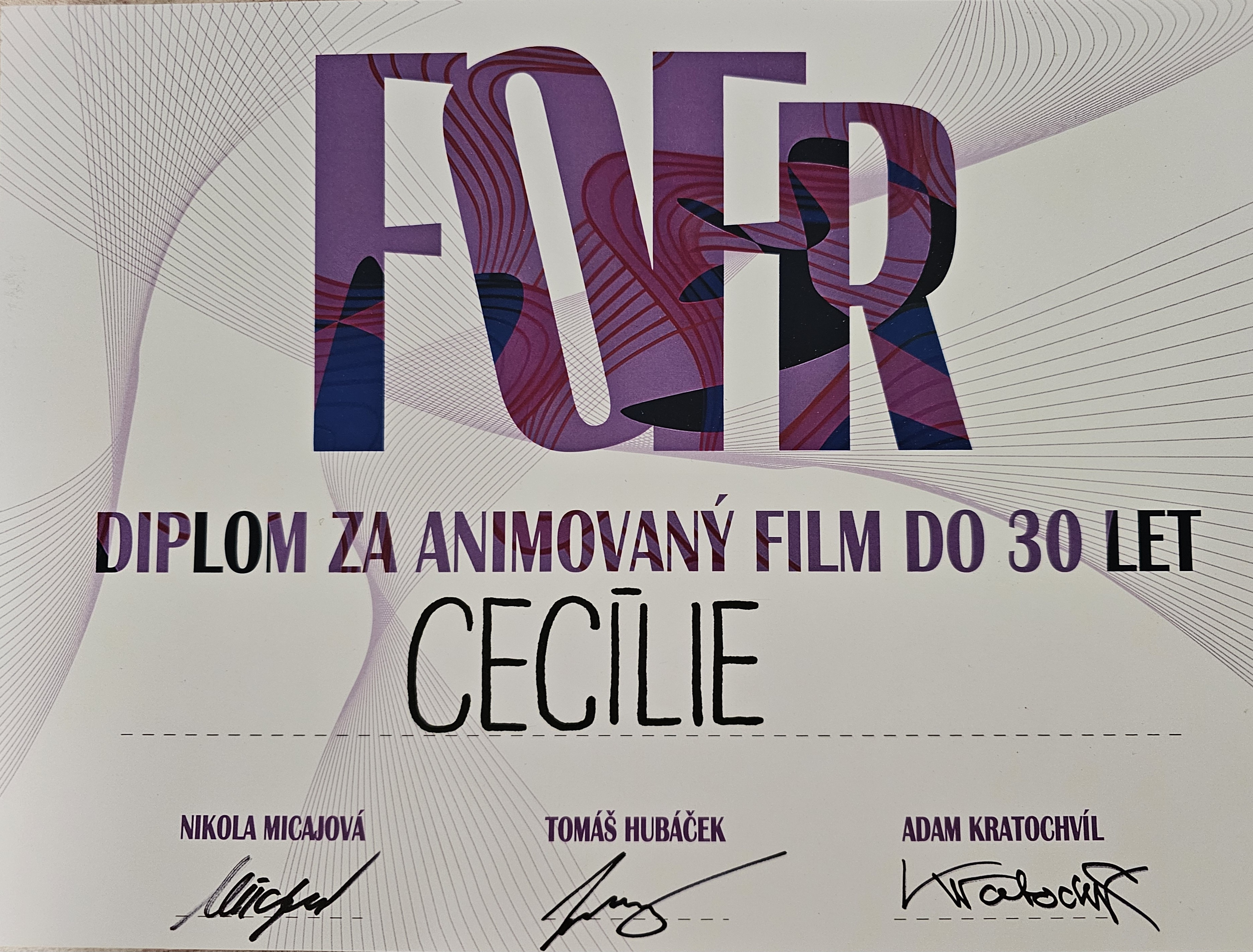 Ocenění animovaného filmu Evelíny Navrátilové ,, CECÍLIE ,,